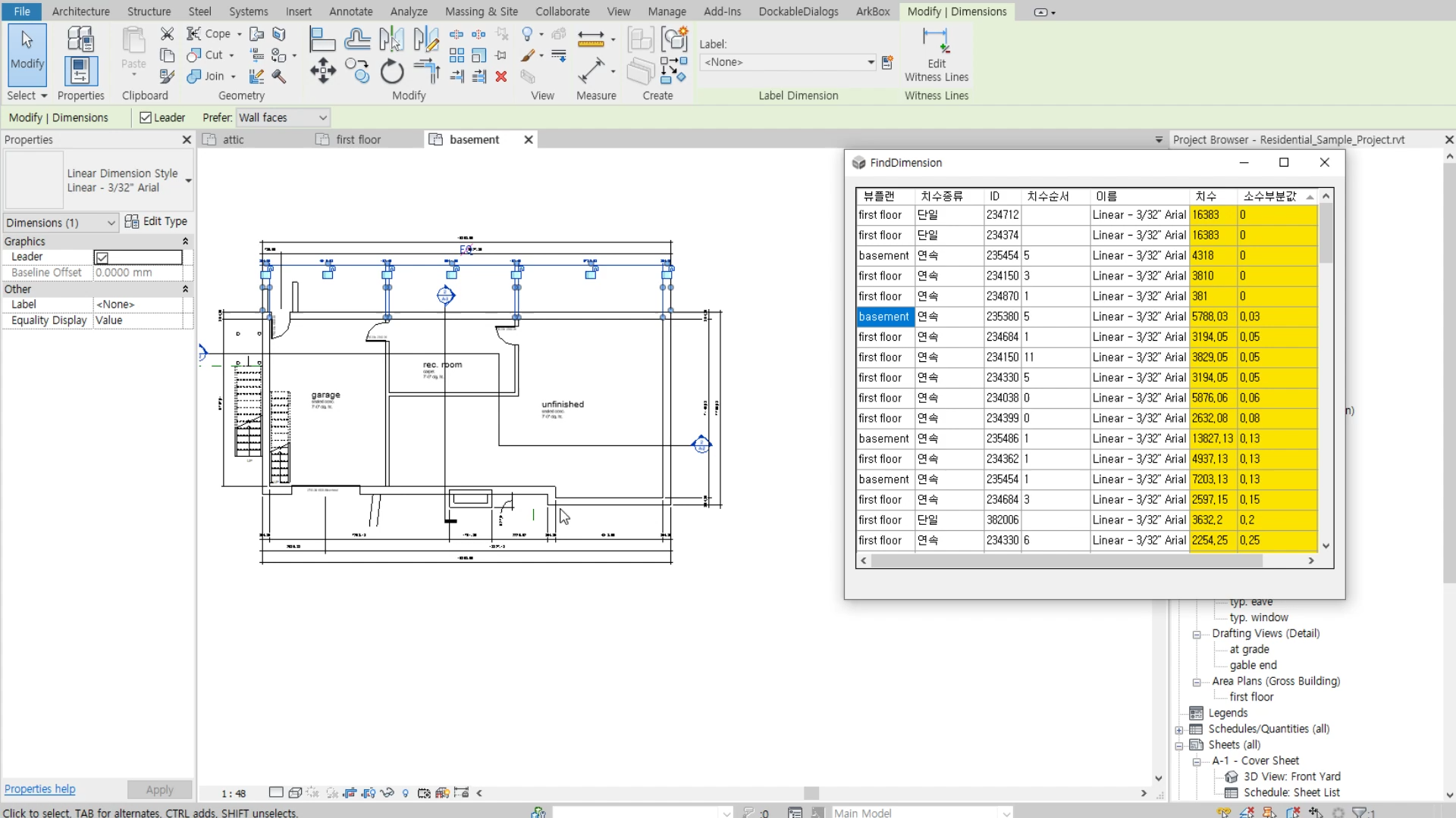 이를 위해 치수리스트를 만들고 원하는 치수를 찾아 변경하도록 하는 기능의 애드인입니다.